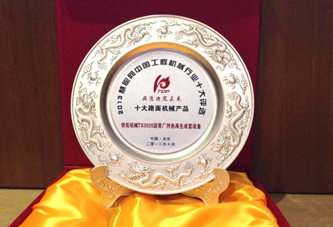 铁拓机械TS系列沥青再生设备荣获2013十大路面机械产品奖