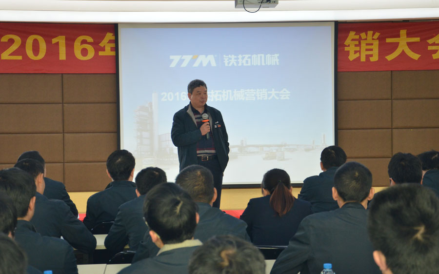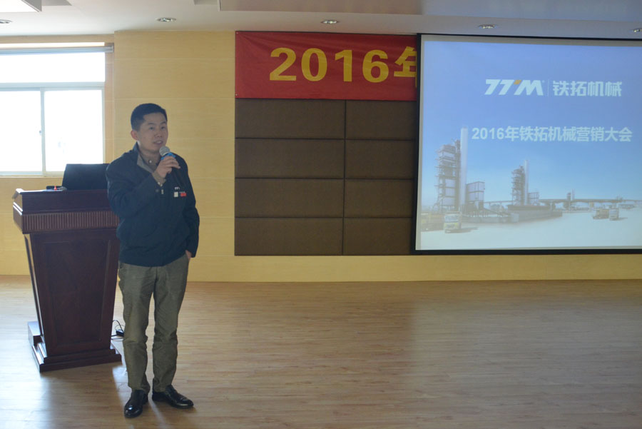 18日下午,大会进入最后环节,铁拓机械营销总监吴胜天在会上向全体营销中心人员汇报2015年营销工作总结以及2016年工作部署。