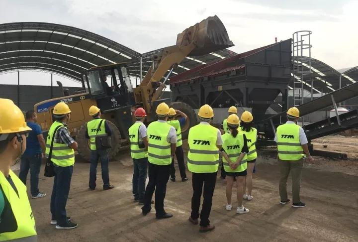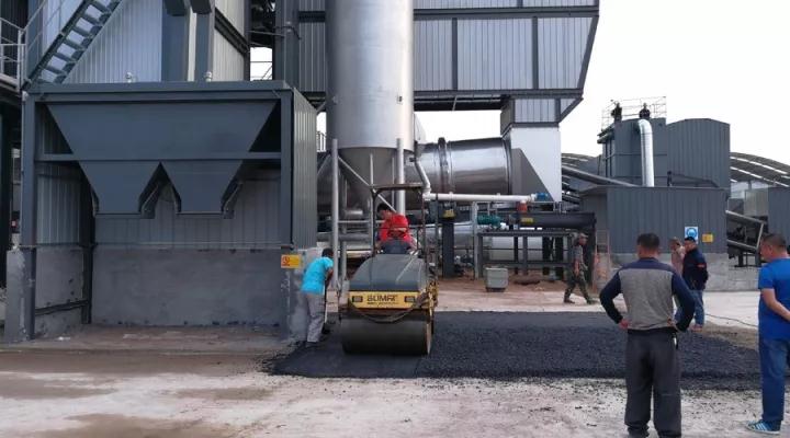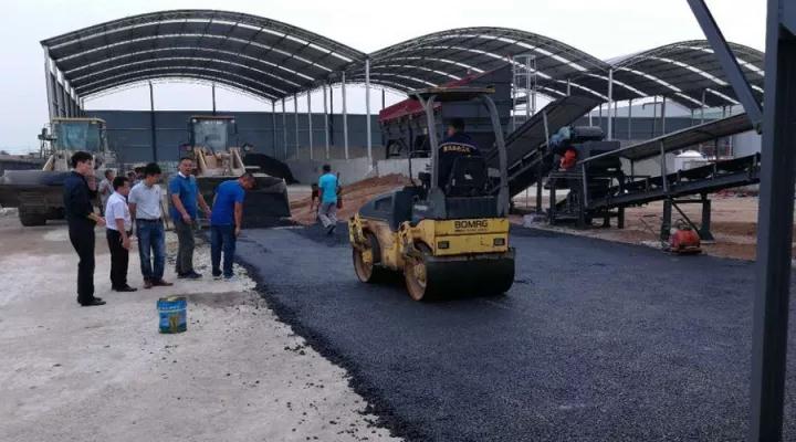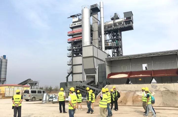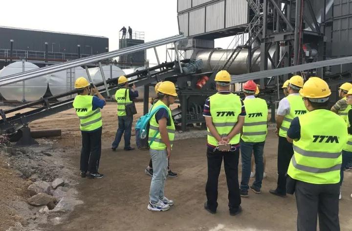 此次接受“检阅”的是铁拓机械TS3015型沥青厂拌热再生成套设备。领导一行乘坐大巴抵达工地时,设备已经顺利调试成功,正处于开机试生产阶段,将于不久投入正式运营。