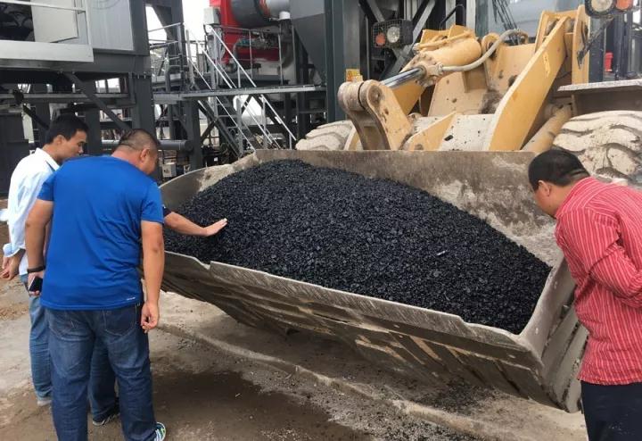 此次生产的沥青混合料之中RAP再生料的添加比例为30%,成品料达到客户要求,并在观摩会现场进行铺筑,废旧沥青料重新回归地面。