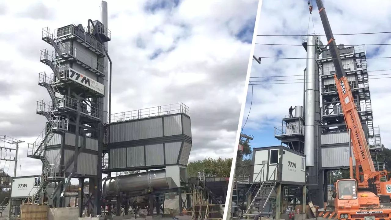 香港TS系列沥青厂拌热再生一体设备紧张安装中,铁拓机械安装人员假日无歇,保证设备安装进度。