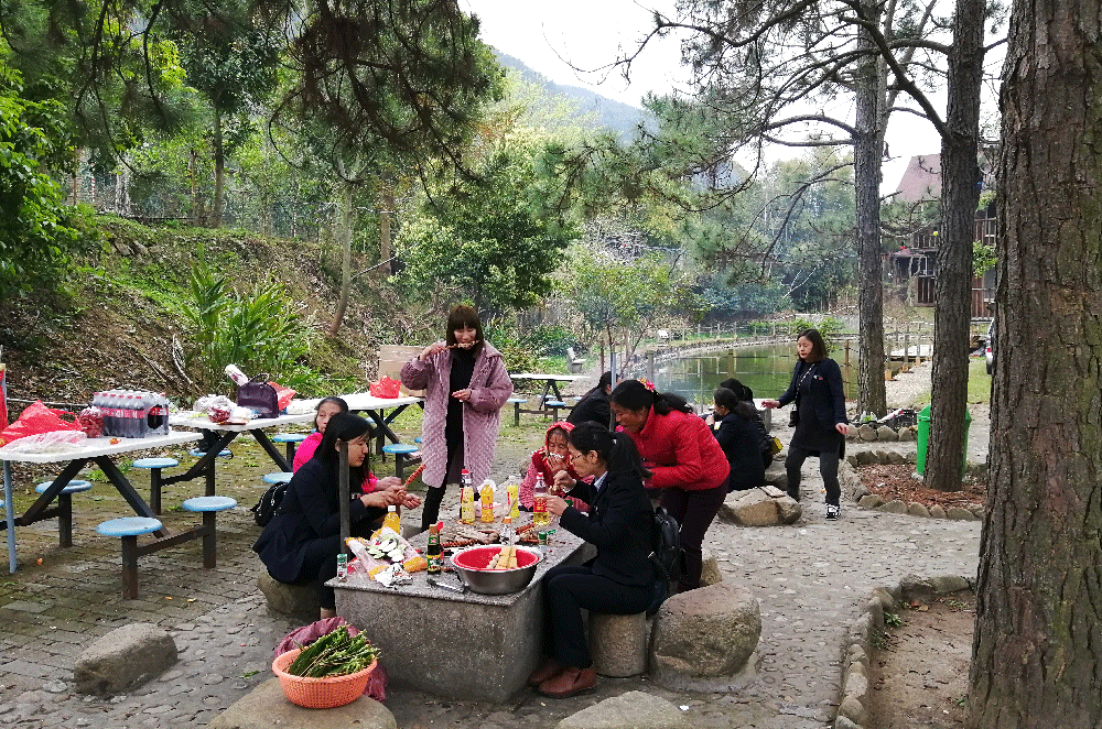 寒意袭来,烧烤架子也早早放上了各式材料,自己动手丰衣足食,饥肠辘辘的半边天们,坐在烧烤架旁,开怀畅聊,共度节日。