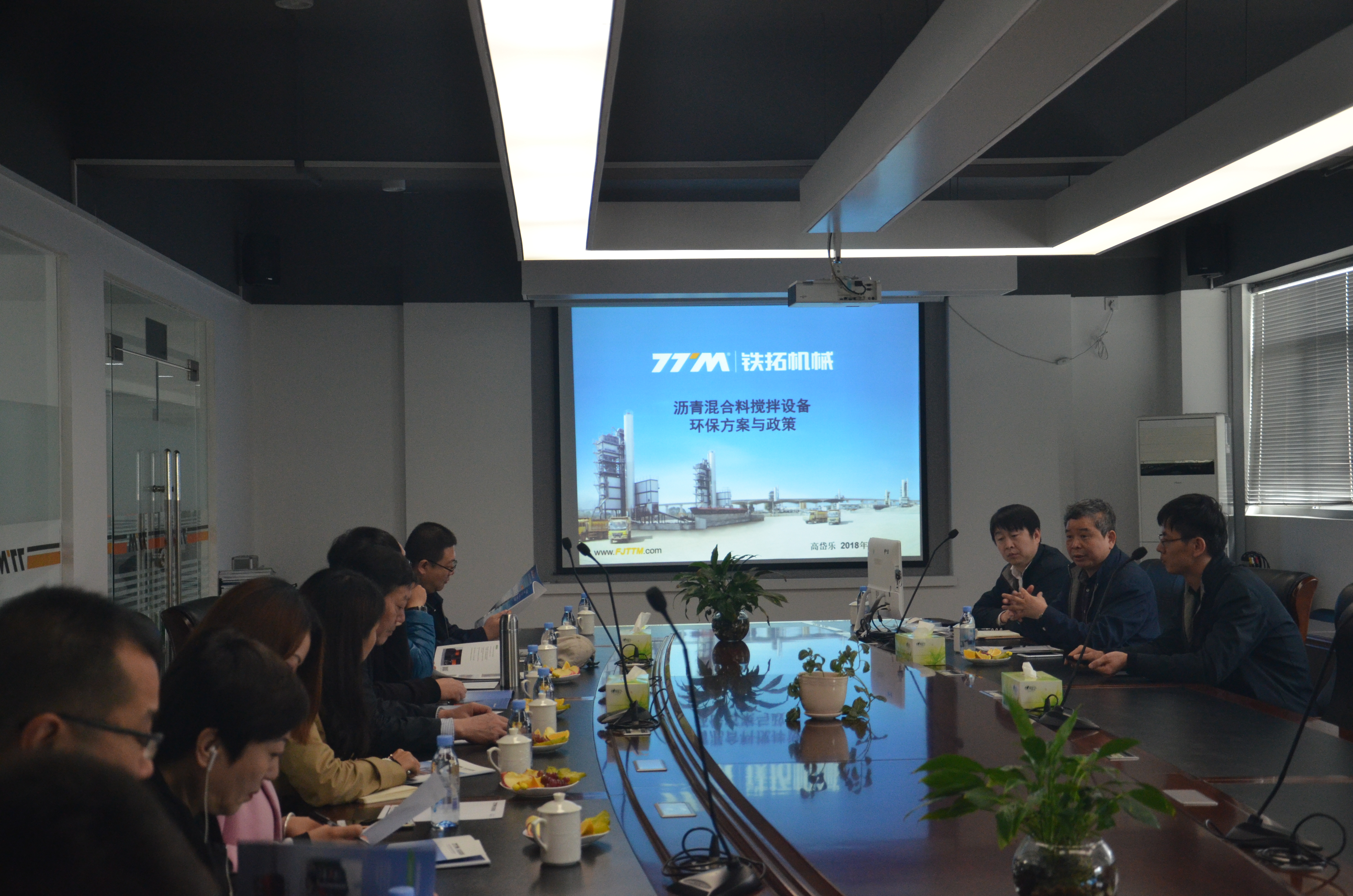 会上,副总经理高岱乐向在座领导详细讲解了国内沥青搅拌行业政策与形势、国内沥青混合料环保技术水平现状、国外同领域的技术现状以及铁拓机械环保提升方面的技术细节、技术研发方面的未来计划等,随意双方就环保问题进行深入交流和学习。