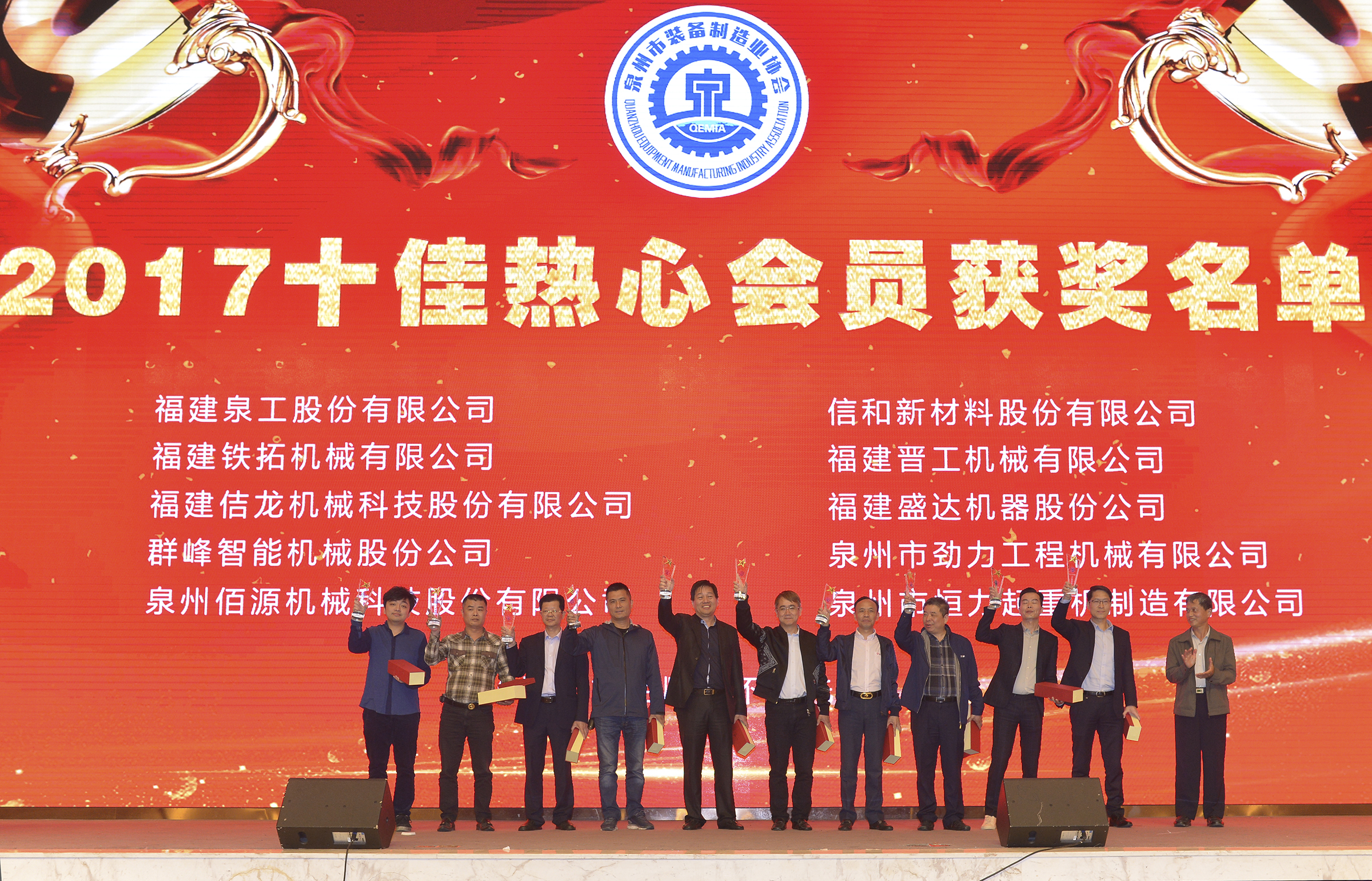 出席大会的皆为泉州本土知名的会员装备制造企业,铁拓机械应邀出席参加了此次大会。大会上发布了“热心会员”奖项,铁拓机械再获殊荣,被协会评选为2017年“十佳热心会员”单位。