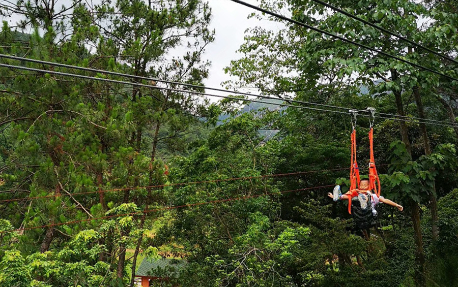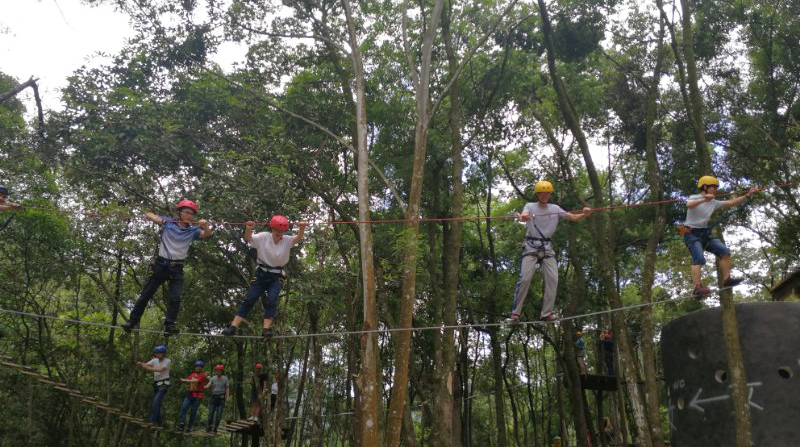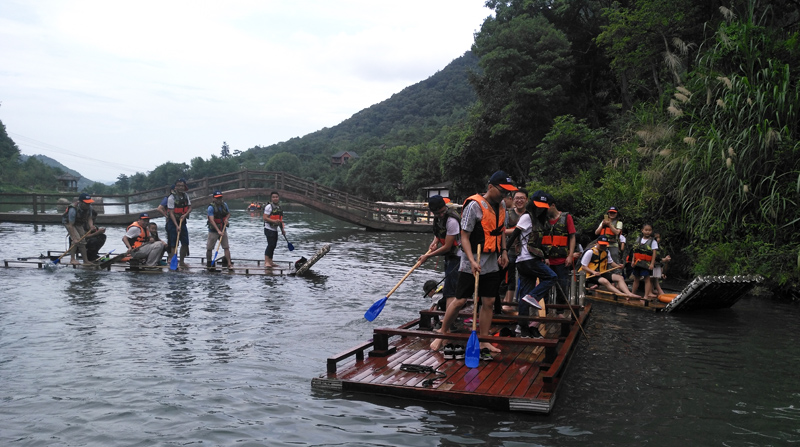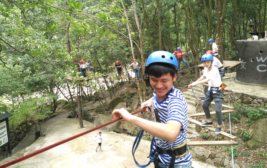 这次团队活动的地点在风景优美的莆田九龙谷。在山水相依,青木环绕的美景下,技术研发中心的各位精英忘掉了炎热,体验了多种精心安排的挑战项目,有丛林穿越、高空滑索和赛竹排运动等等,挑战力十足。