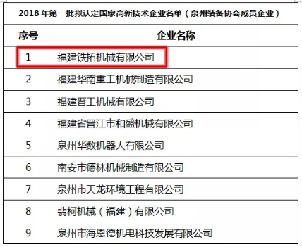 近日,根据《高新技术企业认定管理办法》(国科发火〔2016〕32号)和《高新技术企业认定管理工作指引》(国科发火〔2016〕195号)有关规定,高新技术企业认定管理工作网公布了福建省2018年第一批、第二批拟认定高新技术企业名单的通知。铁拓机械上榜福建省2018年第一批拟认定高新技术企业名单。