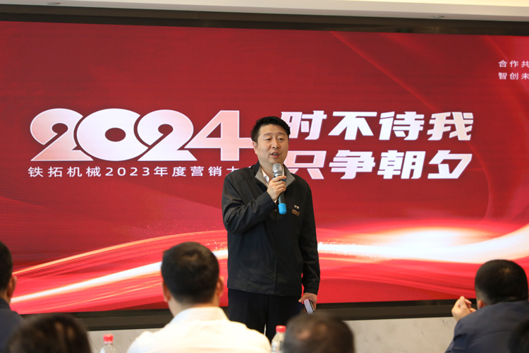 会议伊始,铁拓机械总经理高岱乐为大会致辞。高总在会上指出,市场的竞争环境正在快速变化,希望营销团队树立信心,能够根据不断变化的竞争环境精进自身,聆听客户反馈,把握客户的核心需求,用充满正能量的心态去迎接2024年的挑战!