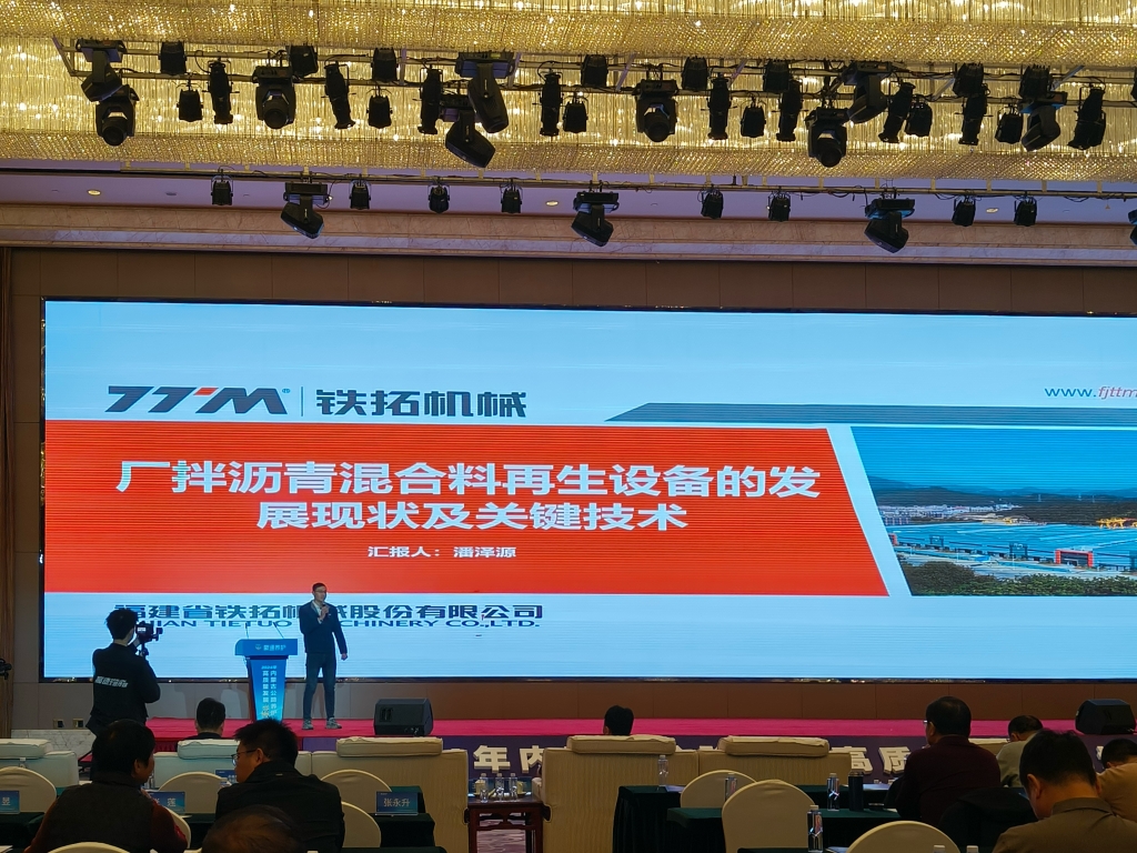 论坛期间,铁拓机械产品研发设计师潘泽源先生发表了题为《厂拌沥青混合料再生设备的发展现状及关键技术》的主题报告,分享展示铁拓机械在沥青厂拌热再生技术领域的新技术和新成果。沥青厂拌热再生技术在公路养护中的应用,不仅能够提升路面性能,降低养护成本,还有助于环境保护和资源的可持续利用,是实现公路养护高质量发展的重要技术手段。