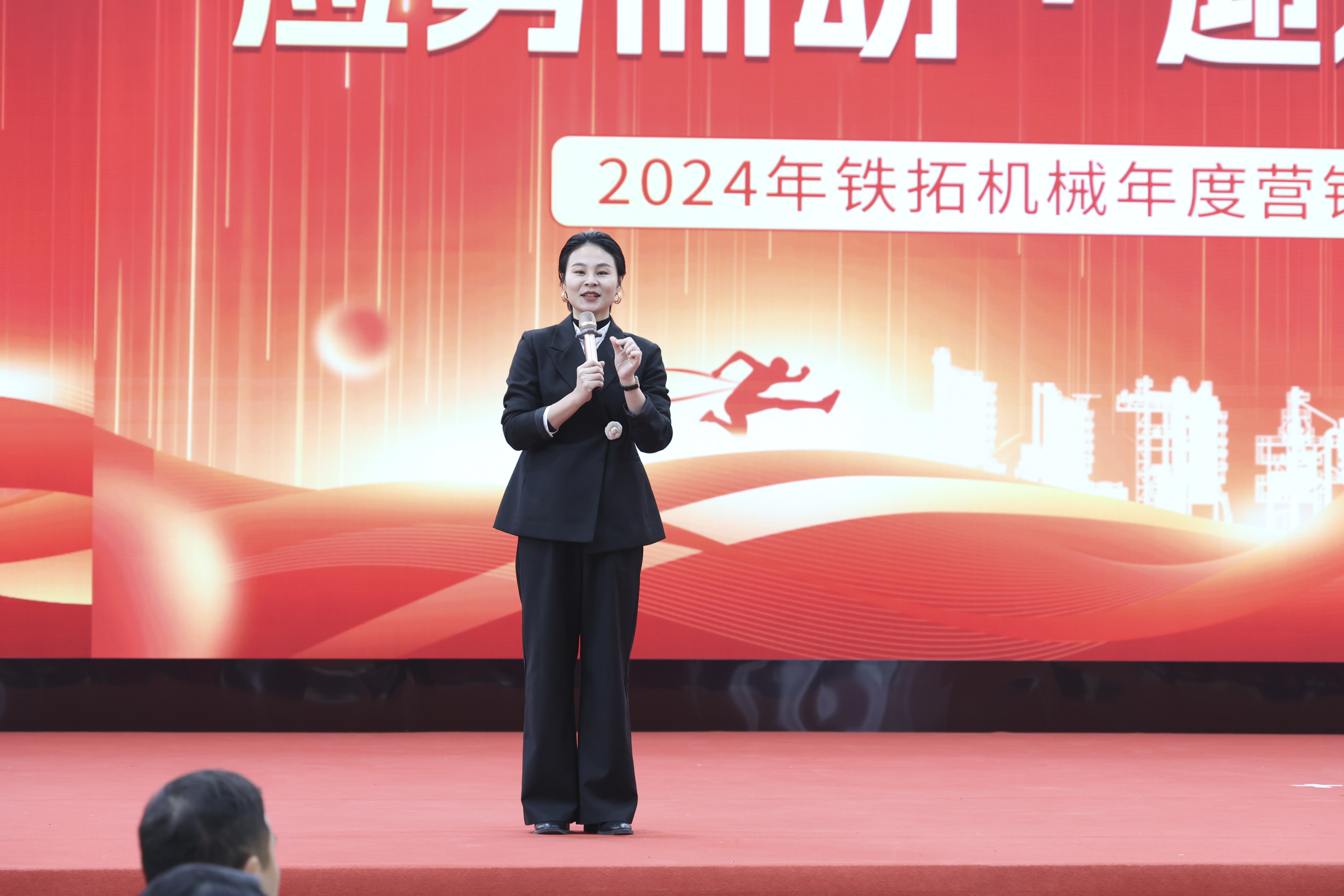 大会伊始,铁拓机械总经理高岱乐发表年会致辞。首先他肯定了营销人员过去一年辛勤的努力。在行业低迷的市场环境下,营销团队凭借敏锐的市场洞察力和坚韧不拔的毅力,成功开拓了多个关键市场,取得了显著成绩。同时,他还深刻指出,在当前瞬息万变的市场环境中,行业竞争日益激烈,技术革新不断加速,唯有不断创新,严格把控产品品质,公司才能在激烈的竞争中立于不败之地。面对这些挑战,铁拓机械的营销团队必须“应势而动”,紧跟市场趋势,优化营销策略,提升客户服务水平。