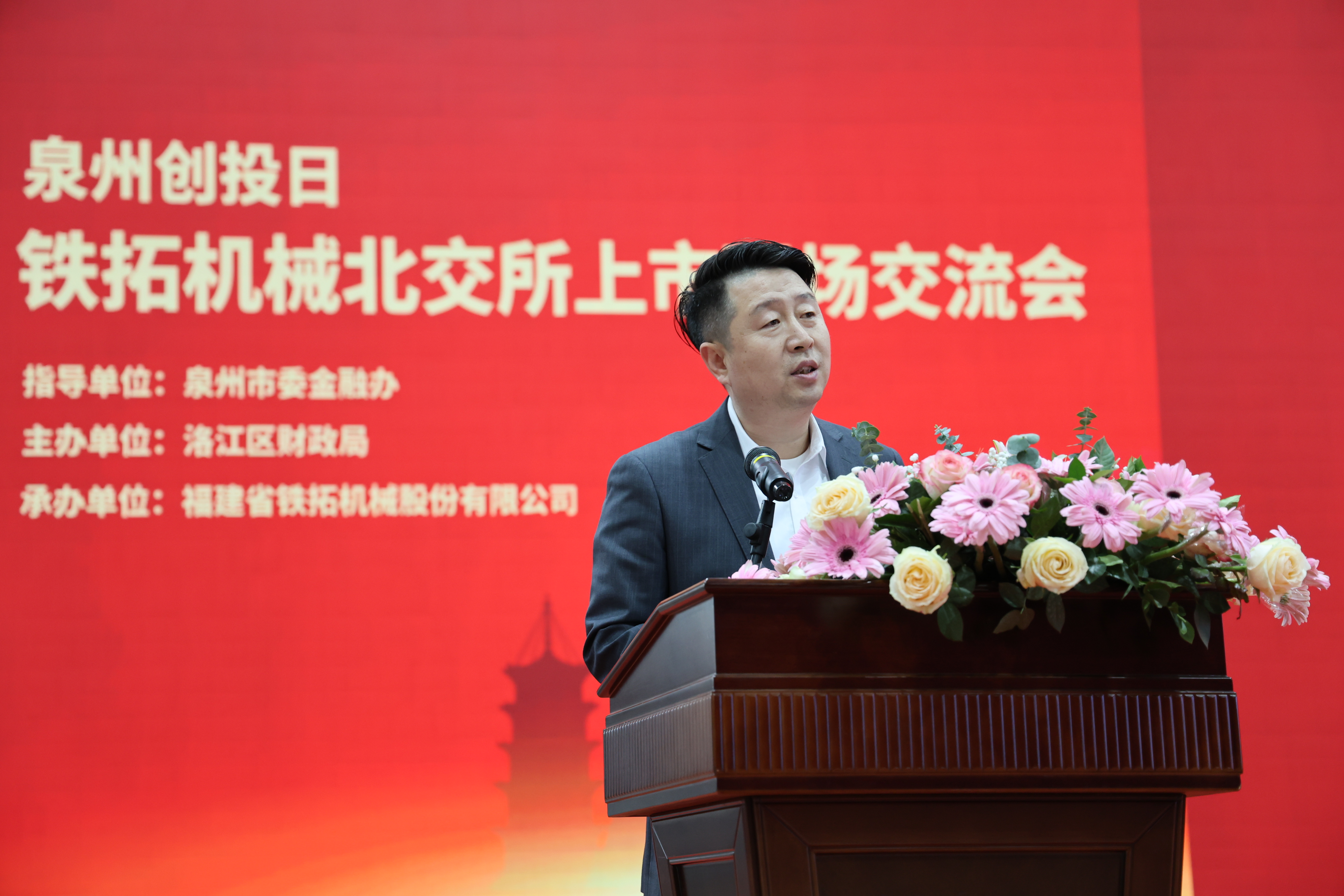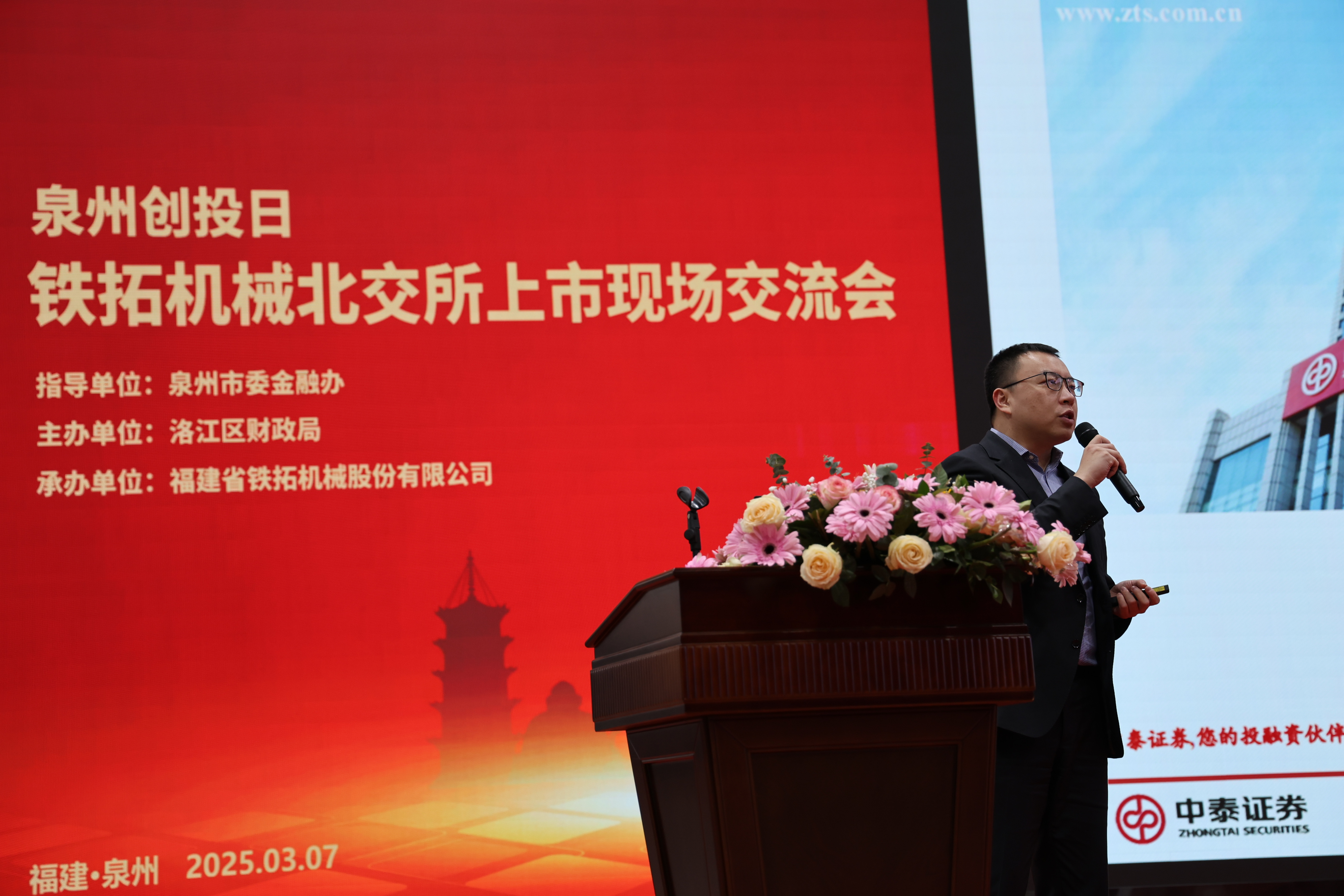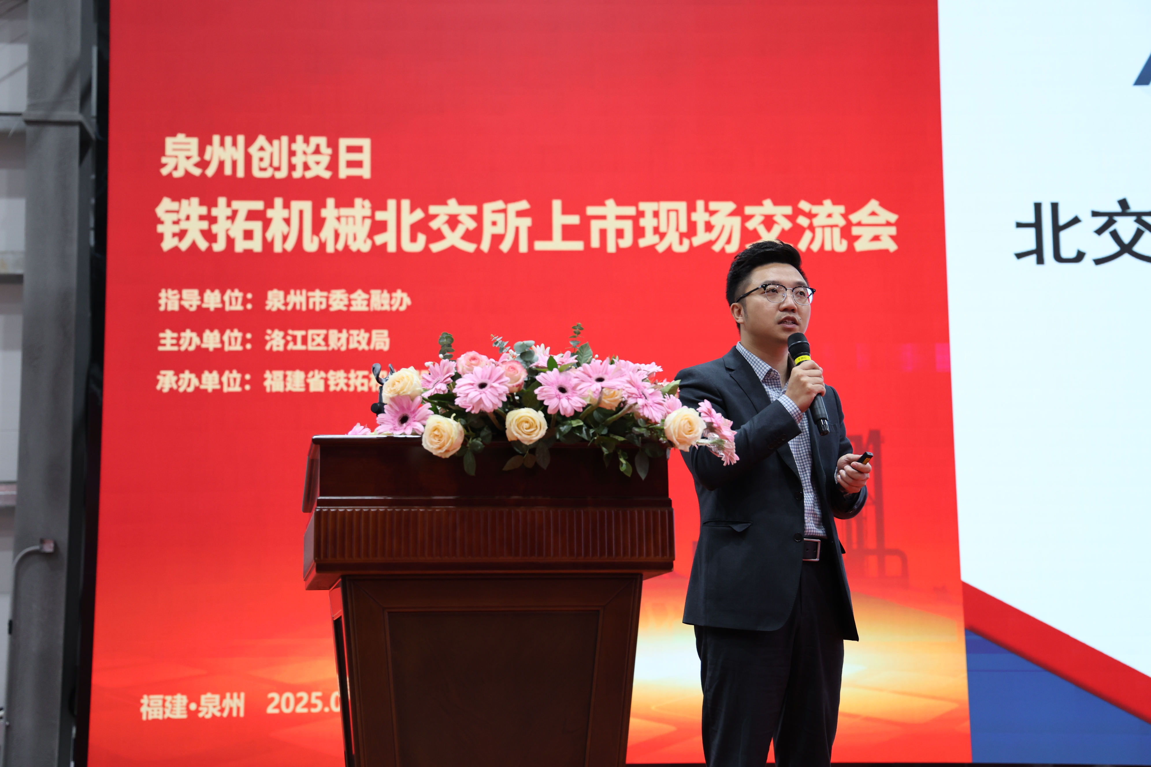 2025年3月7日下午,由泉州市委金融办指导,洛江区财政局主办,铁拓机械承办的“泉州创投日——铁拓机械北交所上市现场交流会”圆满举行。本次活动通过现场交流的方式,复盘企业上市历程,深度解析资本运作经验,并围绕北交所最新政策动向及法律实务展开研讨,为大泉州地区拟上市企业搭建起具有示范效应的产融对接平台。